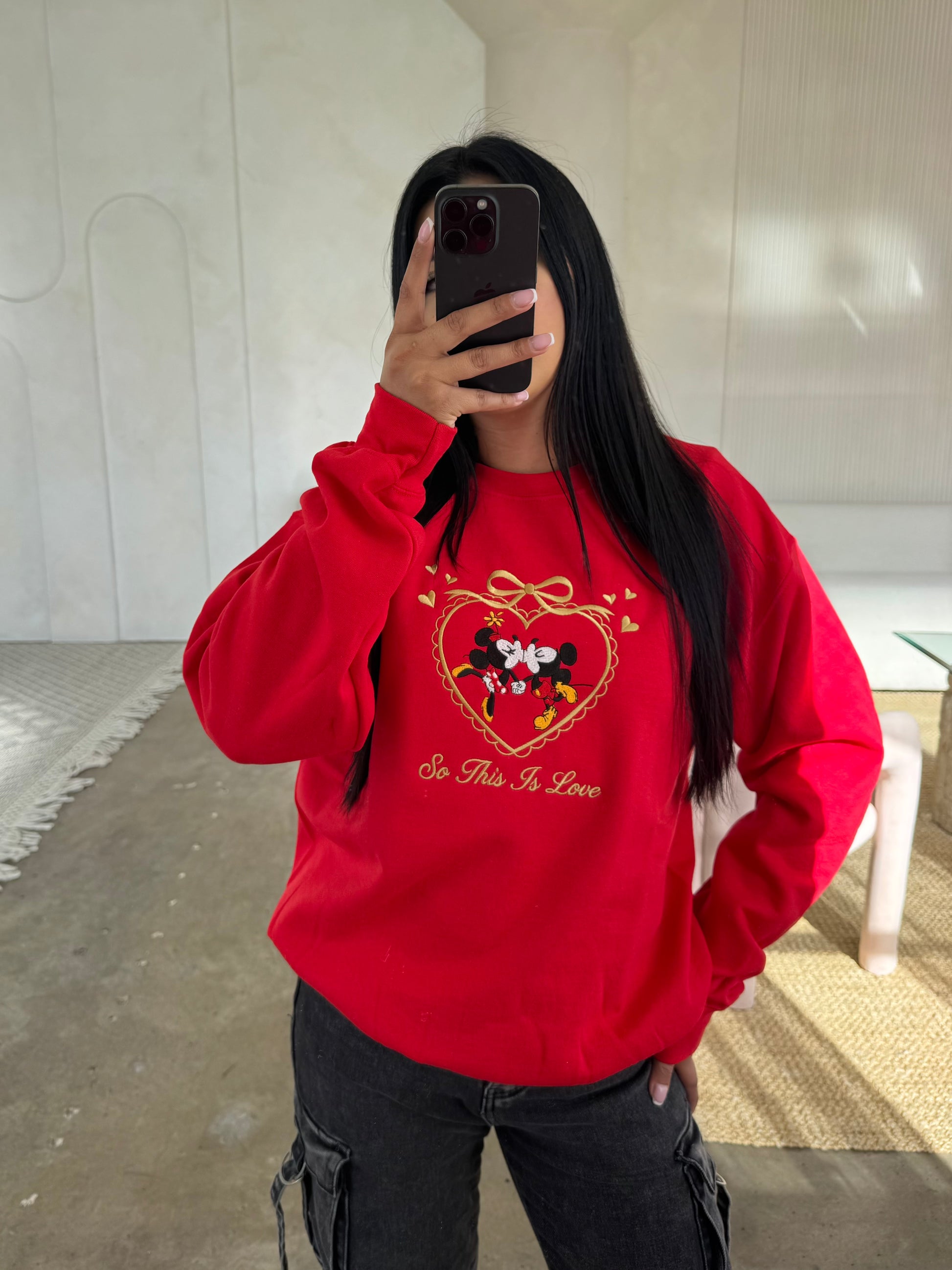 So This is Love Vintage Mickey & Minnie Embroidered Crewneck